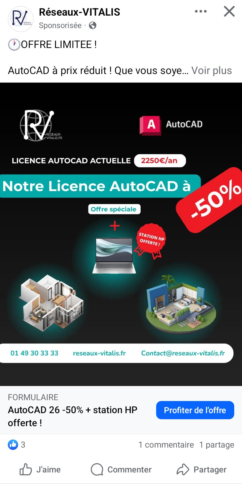 Un AutoCAD® 26 (sic) à 50% et cerise sur le gâteau une station HP offerte !