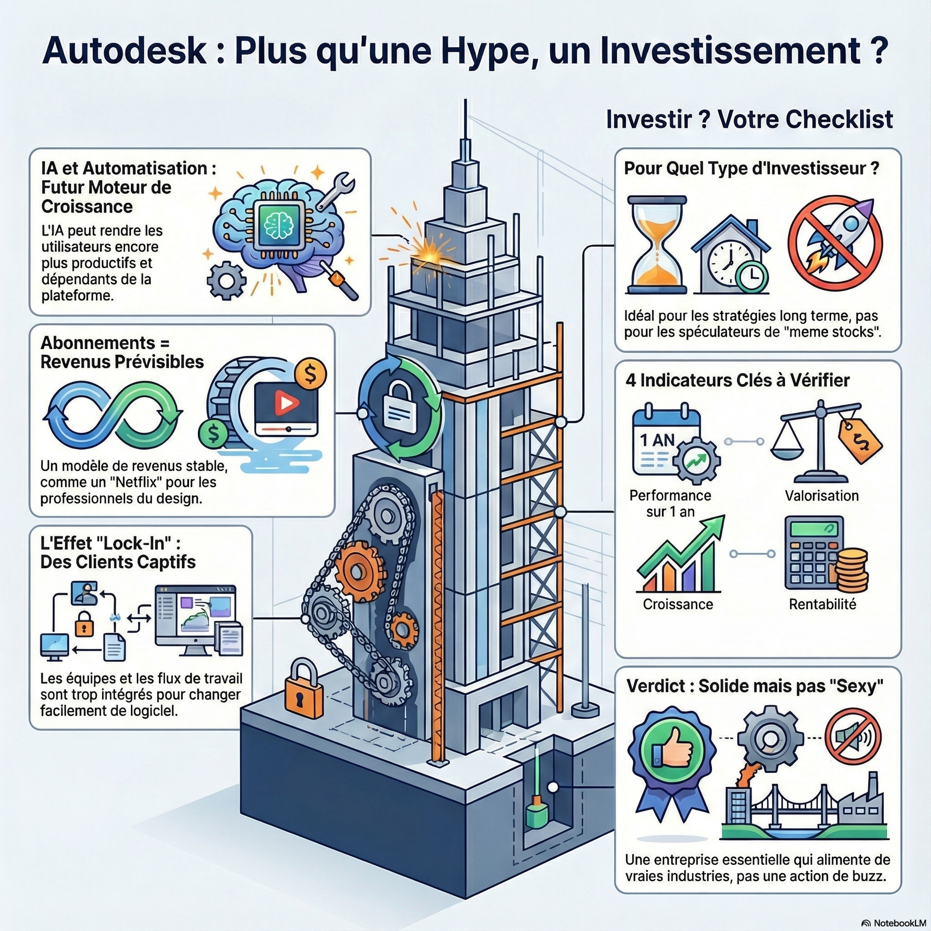 Cette analyse évaluera le modèle économique, l’avantage concurrentiel, les perspectives de croissance liées à l’intelligence artificielle et le profil d’investissement global d’Autodesk®, afin de déterminer si l’action constitue une opportunité d’investissement pertinente.