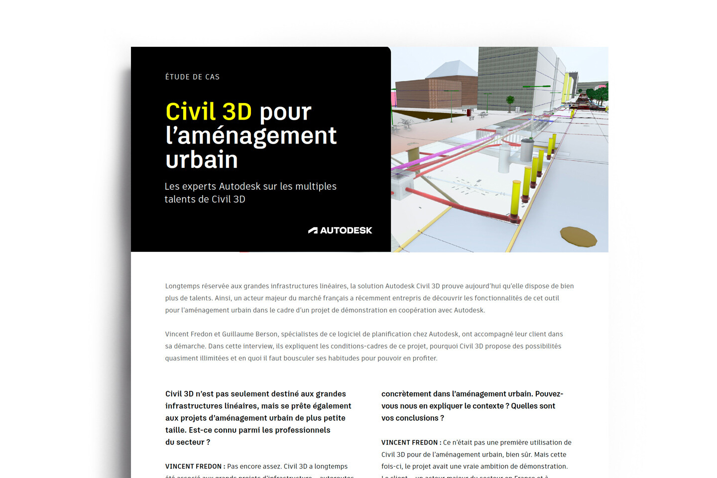 Cet entretien présente les perspectives de Vincent Fredon et Guillaume Berson, experts chez Autodesk®, concernant l’utilisation du logiciel Civil 3D® pour des projets d’aménagement urbain, au-delà de sa perception traditionnelle pour les grandes infrastructures linéaires. Les experts soulignent que Civil 3D® est un outil de modélisation polyvalent ayant considérablement évolué, adapté aux projets de toute échelle, y compris les centres-villes. Ils discutent d’un projet de démonstration mené avec un client majeur en France pour prouver la capacité de l’outil à gérer la complexité des aménagements urbains (rues, jardins, réseaux enterrés) en utilisant des méthodologies flexibles différentes de celles employées pour le génie civil. L’intégration de Civil 3D® dans l’écosystème Autodesk® et sa capacité à répondre aux exigences BIM et à faciliter la collaboration dans un environnement de données commun (CDE) sont mises en avant comme des avantages majeurs pour les professionnels du secteur urbain. Finalement, les experts encouragent l’adoption de Civil 3D® par les urbanistes, en recommandant une approche progressive et ouverte.