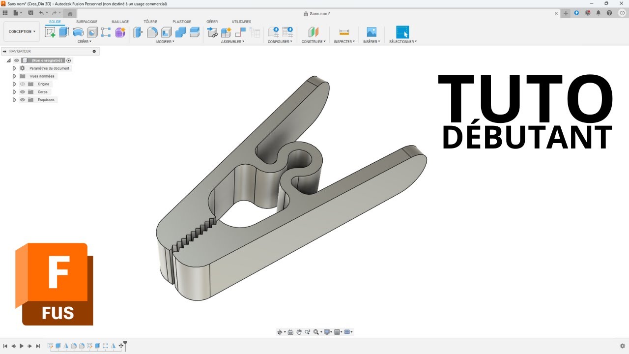 Tutoriel vidéo de la chaîne YouTube « Crea_Din 3D » qui explique comment modéliser une pièce en 3D à l’aide du logiciel Fusion® . L’instructeur guide les débutants à travers les étapes de construction de l’esquisse, en commençant par analyser le plan pour déterminer la meilleure approche, comme l’utilisation de la symétrie et le positionnement de l’origine . La modélisation progresse en détaillant la création des lignes , des cercles et l’application des contraintes nécessaires pour définir la forme de la pièce. Enfin, la vidéo montre comment utiliser la fonction d’extrusion pour donner du volume, ajouter des congés et créer un motif de répétition pour finaliser la modélisation 3D complète.