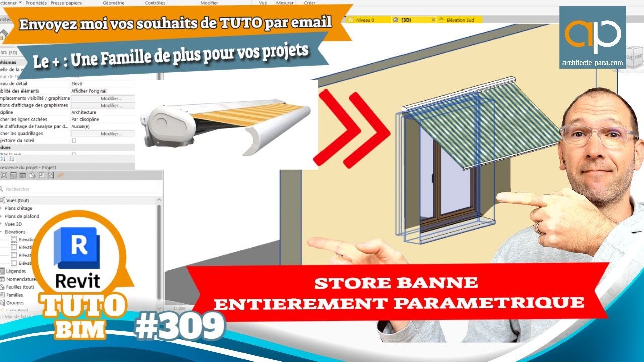 Je suis Pascal Camliti, architecte et formateur Revit®. Dans cette vidéo, je vous présente un tutoriel technique pour construire un store banne paramétrique dans Revit®. J’y explique étape par étape comment créer un store dont vous pourrez ajuster la longueur, la largeur, l’inclinaison et la hauteur grâce à des paramètres, afin de l’adapter facilement à différents projets architecturaux.