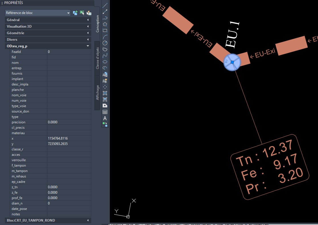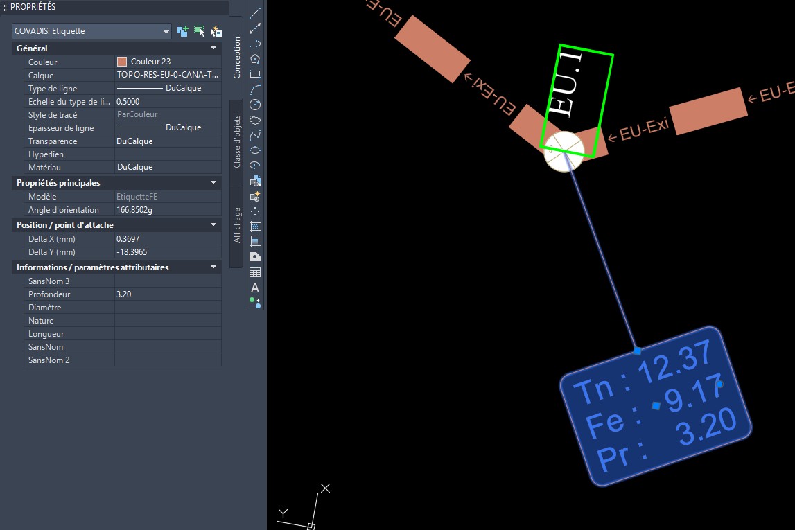 Pour détailler ma demande, je voudrais pouvoir « copier/coller » directement dans Autocad Map (via un lisp par exemple), les données d’une étiquette Covadis dans les champs d’une table attributaire (ou table OD) rattachée à un objet contenu dans mon plan.