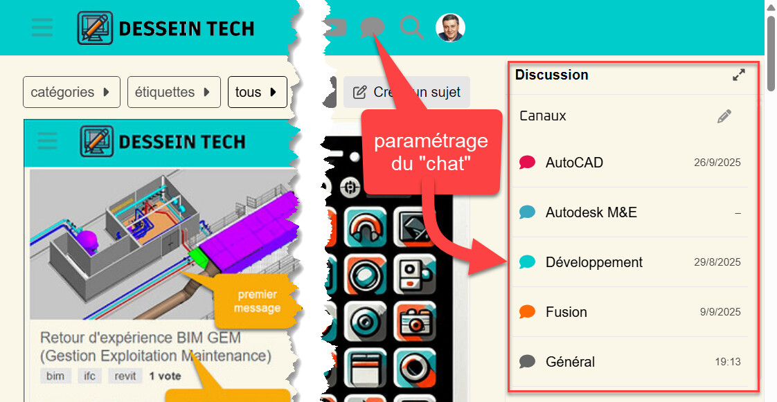 Vous verrez si vous êtes sur PC (pas sur mobile) une fenêtre (ou barre) latérale droite de « Chat » (discussion en direct):