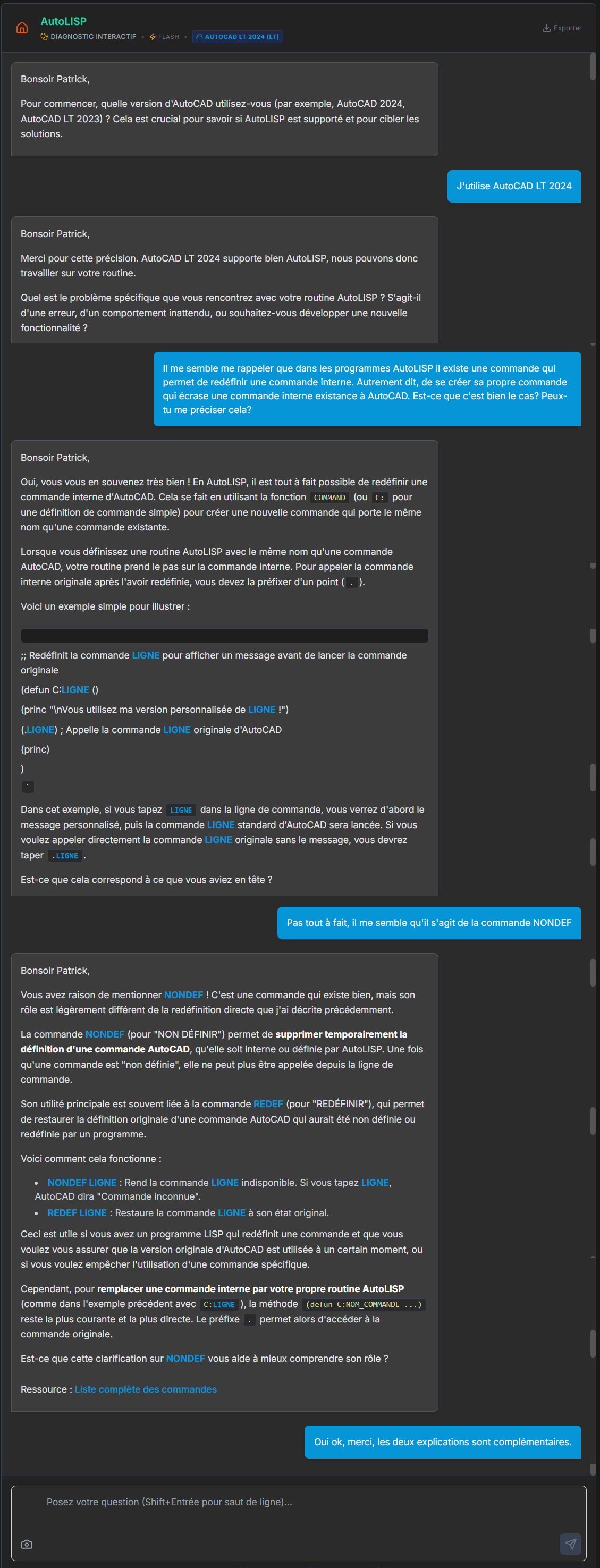 Après les premières expérimentations de l’assistant expert AutoCAD basé sur l’intelligence artificielle et les premiers tests effectués par moi même et @REBCAO, je viens de mettre en ligne la version Pro de cette assistant, qui est une version qui n’a pas les mêmes limitations que la version publique, puisqu’elle est liée à un plan payant Google AI que je prends en charge moi-même en tant que créateur de l’application.