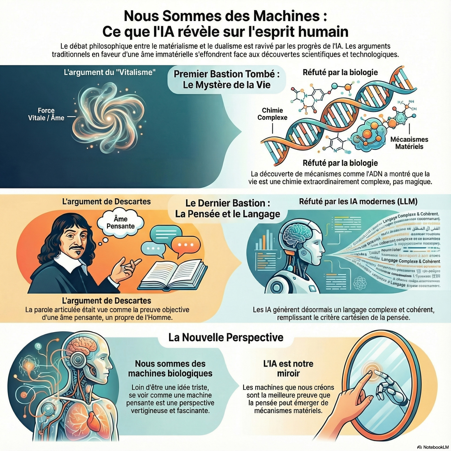 Bon, OK, le corps est une machine. Mais l’esprit ? Ça, c’est différent… non ?