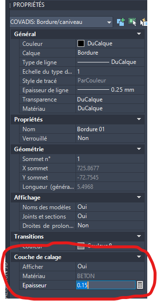Pour la fondation des bordures, je ne sais pas comment ça fonctionne mais quand tu sélectionnes tes bordures, dans les propriétés, tu peux gérer la hauteur de la fondation.