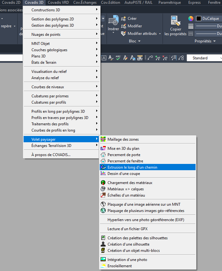 Vu que l’extrusion suit une polyligne, je pense qu’avec un clic droit sur la polyligne, on doit pouvoir inverser son sens ou dans les menus Covadis® de gestion des polylignes.