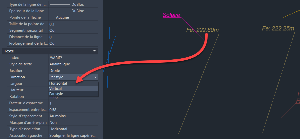Mais oui par contre en opérant à postériori une rotation sur une ligne de repère dont le texte a été replacé correctement avec la procédure ci-dessus, le texte n’est toujours pas à la bonne position.