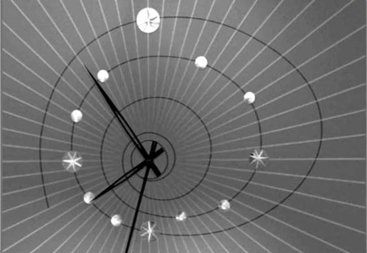 Cette image est un vestige emblématique de l’histoire de la télévision française. Il s’agit de la célèbre Horloge de l’ORTF (Office de Radiodiffusion-Télévision Française).