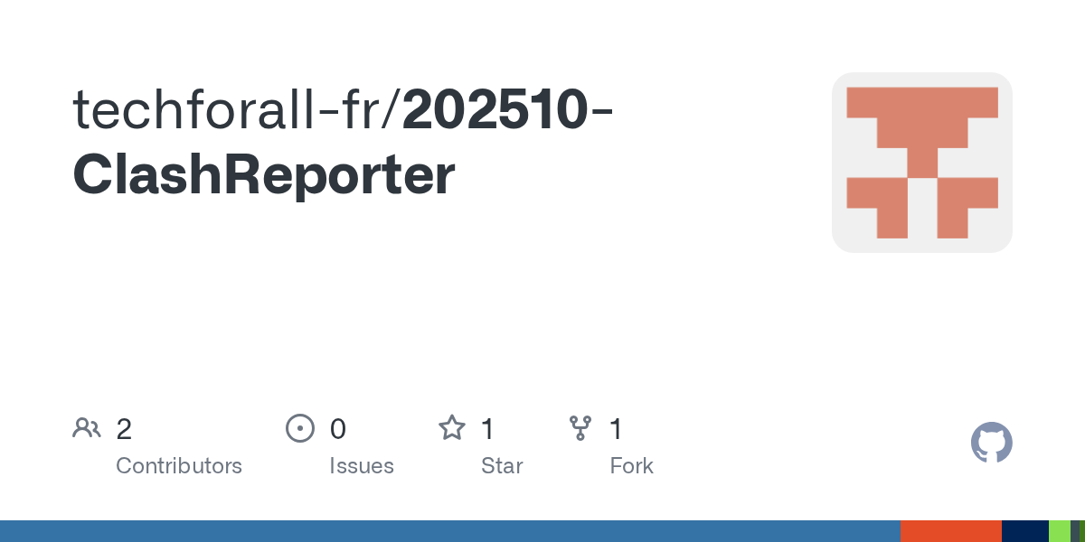 Page GitHub présentant le dépôt de code pour « Smart Clash Reporter » un outil de coordination BIM (Building Information Modeling).