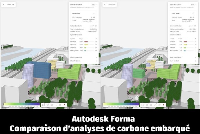 Village BIM - Autodesk Forma – Comparaison d’analyses de carbone embarqué