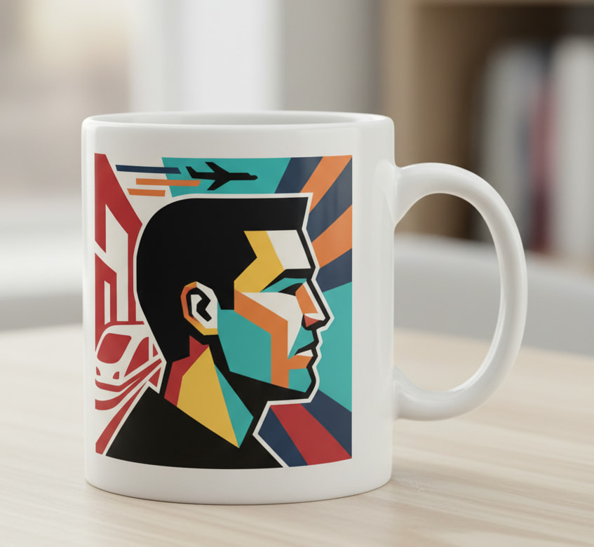 Formes géométriques et abstraites : L’usage de formes simples comme les rectangles, les cercles, les lignes, et les cubes est central. Les compositions abstraites sont souvent dynamiques, avec des contrastes de couleurs et des éléments linéaires.