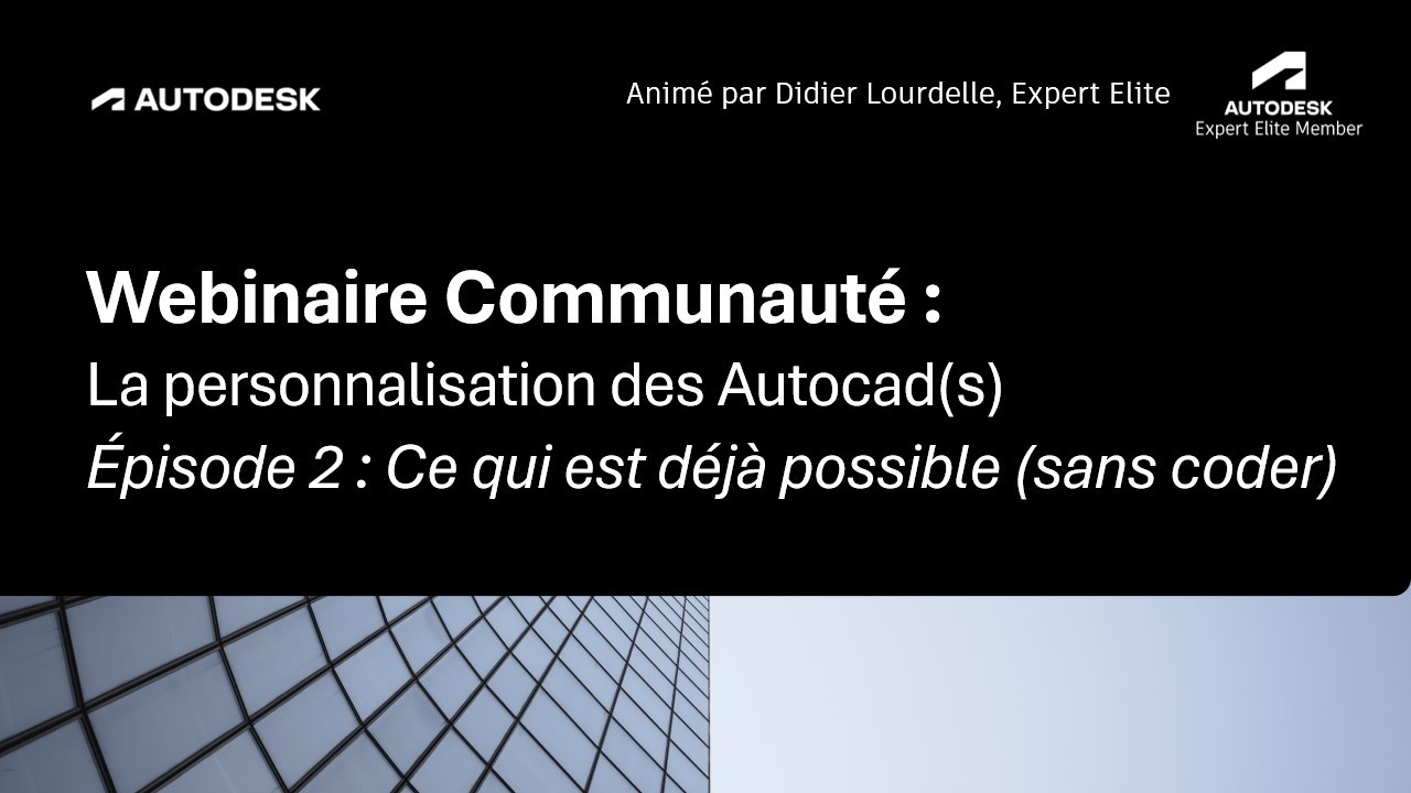 Ce webinaire d’Autodesk France présente le deuxième épisode d’une série dédiée à la personnalisation d’AutoCAD sans recours complexe à la programmation. L’expert Didier Lourdelle y démontre comment optimiser son flux de travail en utilisant des palettes d’outils, des macros simples et le langage AutoLisp, désormais accessible sur la version LT 2024. À travers des exemples concrets comme la commande de décalage ou la création automatique de présentations, la source souligne l’importance d’automatiser les tâches répétitives pour gagner en productivité. Les échanges mettent également en avant la nécessité de structurer ces personnalisations pour faciliter la collaboration au sein des bureaux d’études. Enfin, l’intervention de la communauté rappelle que l’intelligence humaine et la maîtrise des bases logicielles restent essentielles face à l’émergence de l’IA.