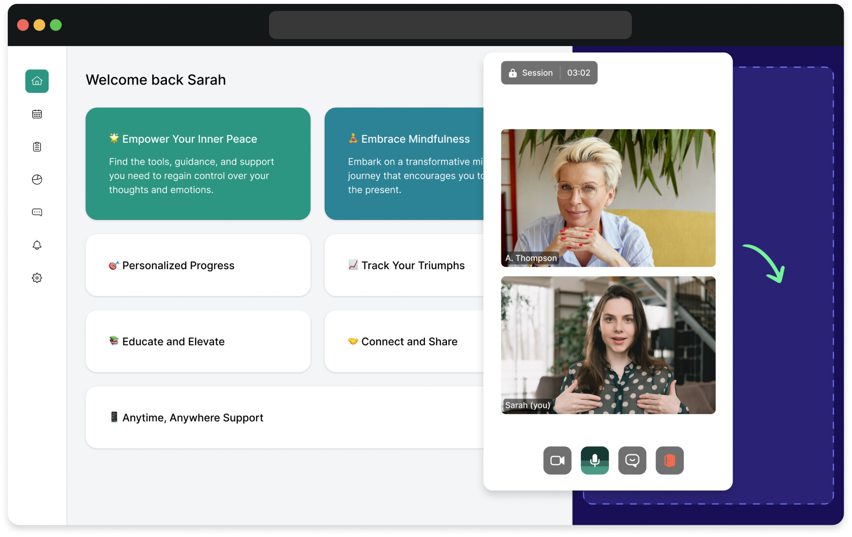 - 100 % dans le navigateur : Tous les appels Whereby se déroulent directement dans votre navigateur. Cela garantit une connexion facile pendant une session.
